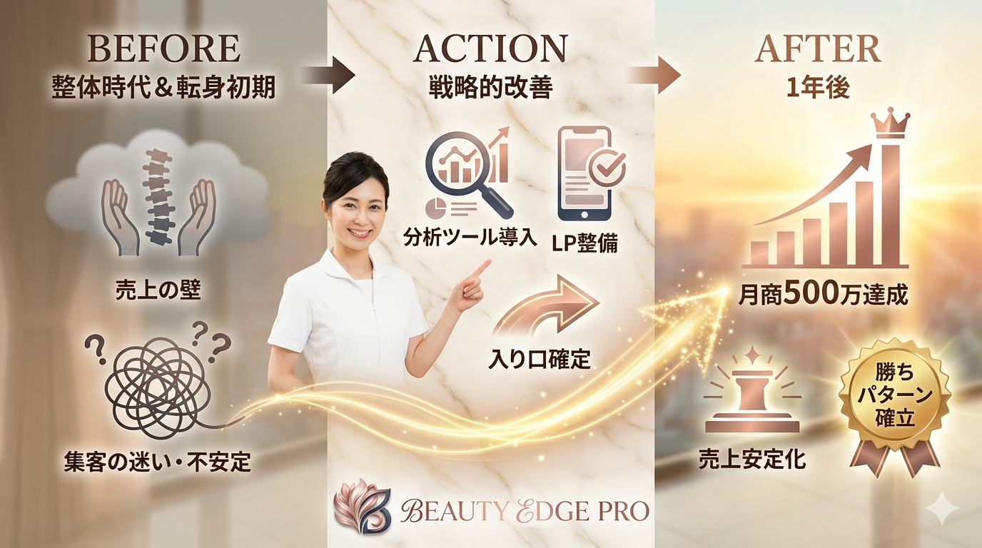 整体から美容へ一新、わずか1年。 集客の仕組み化で、月商500万円を達成させた「独自の勝ちパターン」